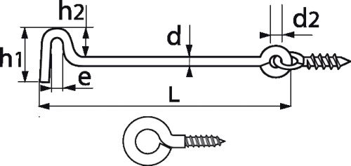 62323 CROCHET DE CONTREVENT AVEC PITON Inox A2