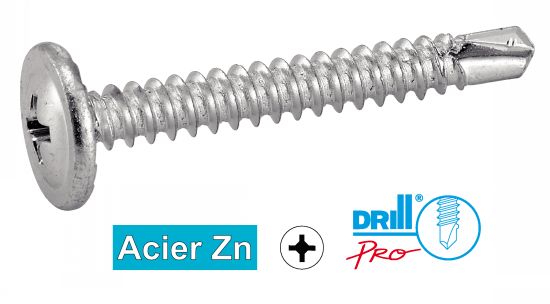 33371 VIS AUTOPERCEUSES TETE CYLINDRIQUE CRANTEE EXTRA LARGE PHILLIPS Acier Zn - Zingué blanc