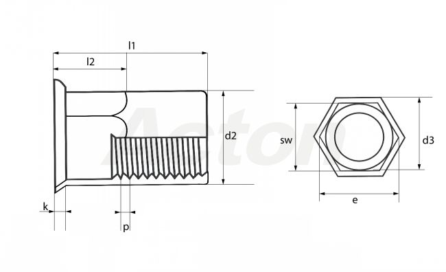 62645 ECROUS A SERTIR HEXAGONAL A TÊTE FRAISÉE AFFLEURANTE Inox A2
